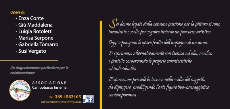 Il messaggio, come scritto nella locandina è molto chiaro: "Sei donne legate dalla comune passione per la pittura si sono incontrate e scelte per seguire insieme un percorso artistico. Oggi espongono le opere frutto dell’impegno di un anno. Si esprimono alternativamente con tecnica ad olio, acrilico e pastello, conservando le proprie caratteristiche e individualità. L’ispirazione precede la tecnica nella scelta del soggetto da dipingere, prediligendo l’arte figurativo-paesaggistica contemporanea”.