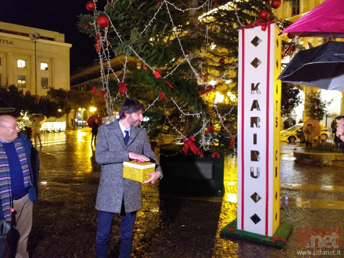 Erano le 17 di oggi quando alla presenza del sindaco Roberto Gravina sono state accese le luminarie dell' albero di Natale di Piazza Municipio.
