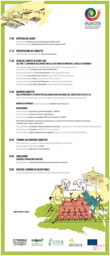 Nell’ambito dell’evento è prevista infatti sia la divulgazione dei progetti di maggiore interesse segnalati dal partenariato e sostenuti nell’ambito dei Psr 2014-20, sia una cerimonia di premiazione di opere realizzate dal vivo da cinque artisti di strada, precedentemente selezionati a livello regionale, sul tema dell’agricoltura sostenibile #RURART2019.