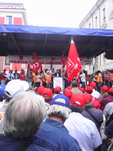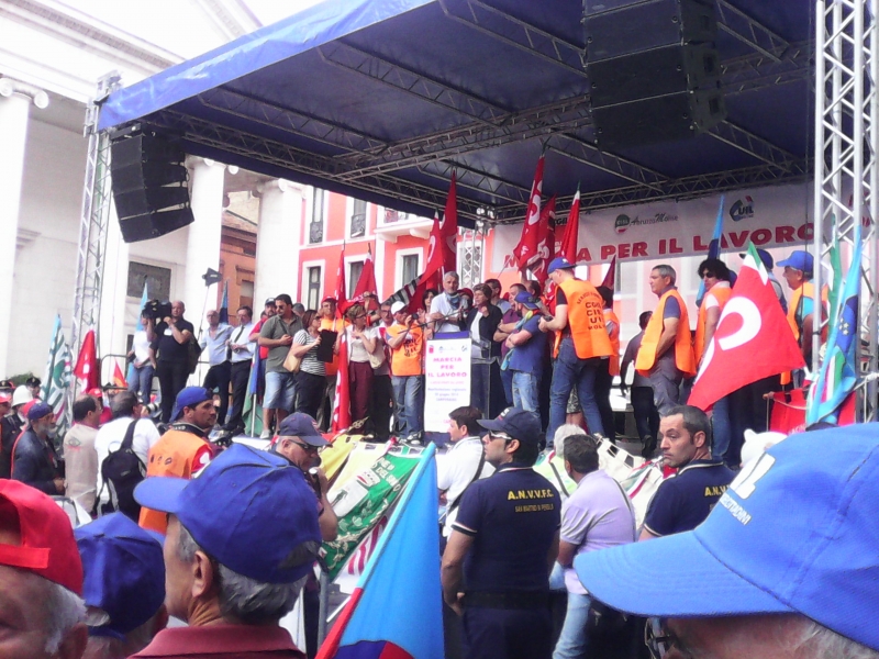 Presente fin dall'inizio della manifestazione, Susanna Camusso, segretario generale della Cgil, che ha sfilato in corteo con i lavoratori e i disoccupati, e che ha chiuso la manifestazione dal palco allestito in Piazza Prefettura.