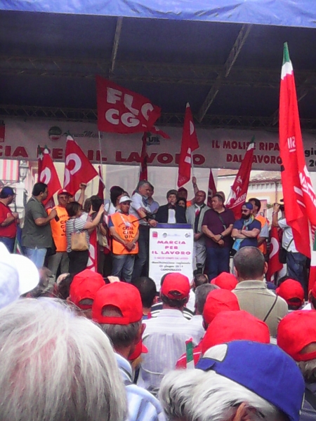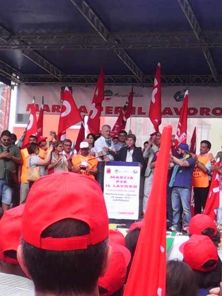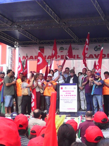"Bisogna essere orgogliosi di questa piazza - ha detto - perché questa piazza dice che il Molise non si rassegna all’idea che non ci sia possibilità di avere lavoro, e soprattutto non si rassegna a vedere un sistema sgretolarsi giorno dopo giorno. Da qui il Molise alza la sua voce, perché se non si parla di lavoro non si parla delle persone, della loro dignità e della loro vita. E’ vero quella che stiamo attraversando è la peggiore crisi che l’Italia abbia mai vissuto, ma ciò non può essere l’alibi per parlare d’altro, la crisi va contrastata”. Successivamente si è rivolta al premier Renzi e al governatore Frattura ricordando le crisi aziendali di Gam, Zuccherificio e Ittierre: "Non faccia il decreto sulla cassa integrazione in deroga, il Governo non condanni questa regione e altre regioni a dover procedere ad altri licenziamenti. Quella legge non produrrà risparmi, ma giocherà esclusivamente con il reddito di migliaia e migliaia di lavoratori e con il destino di tante famiglie". Infine un duro attacco alle legge Fornero sulle pensioni "che ha condannato migliaia di lavoratori a vivere da un giorno all'altro nel dubbio e nell'incertezza per un numero imprecisato di anni senza rendersi conto dei danni che si stavano creando".