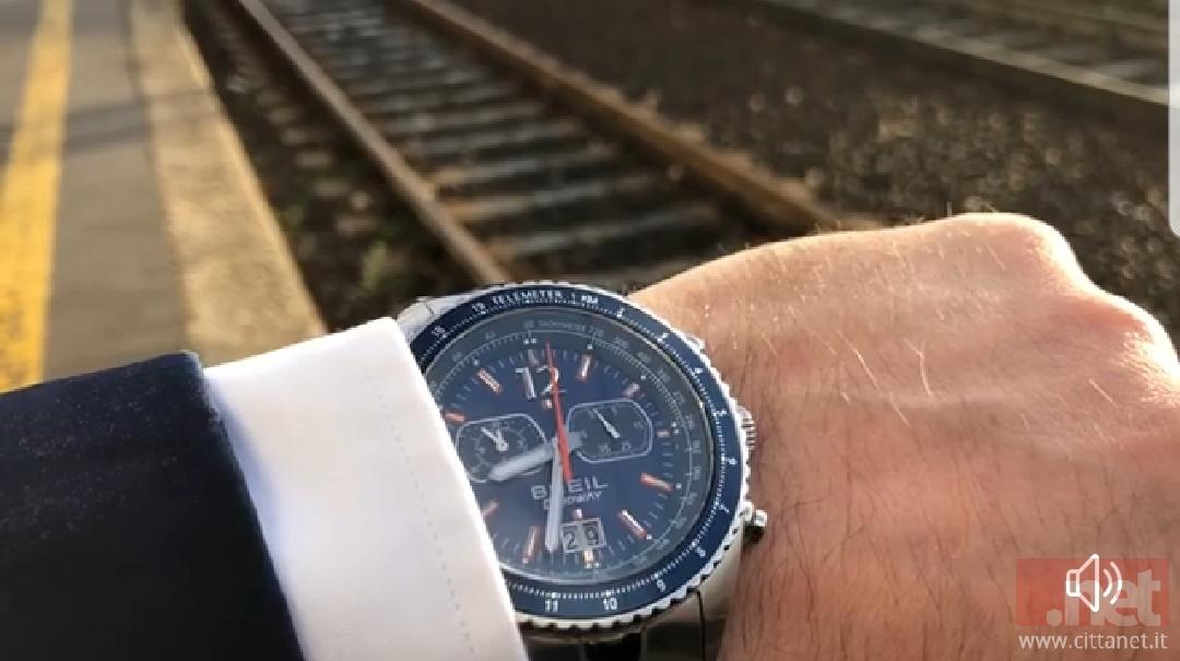 "Ecco il trionfale arrivo del treno regionale anarchico 2351 Campobasso-Roma Termini, che doveva partire da Venafro alle 7.04 e invece, come potete vedere dall’orologio di un passeggero sua vittima, è arrivato in stazione bello pimpante alle 8.33, dopo aver superato due passaggi a livello rotti, uno a Boiano e uno a Carpinone".