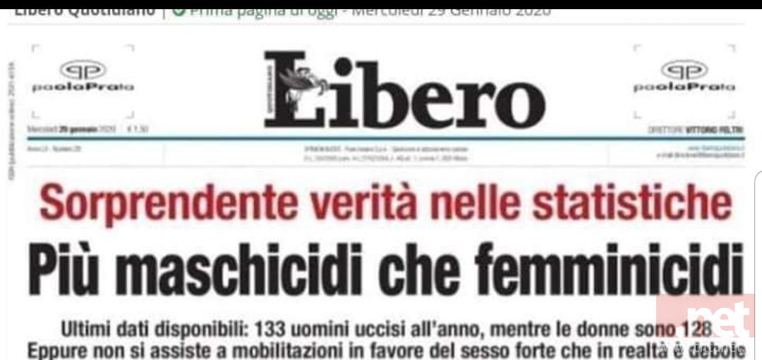 Libero, il famoso giornale ben noto per le sue copertine sessiste e maschiliste, stavolta la ha fatta grossa. Ha pubblicato una copertina in cui dice che i maschicidi sono più dei femminicidi.