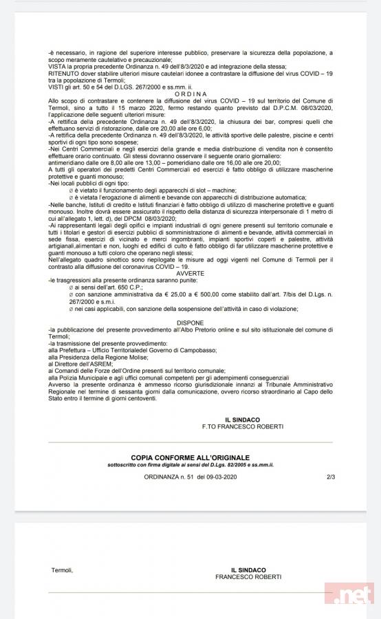 La riunione si è conclusa solamente a tarda sera nella consapevolezza che, richiamandosi a quanto già stabilito sia a livello nazionale che regionale, anche il comune di Termoli dovesse allinearsi a quelle che sono le nuove prescrizioni e restrizioni.