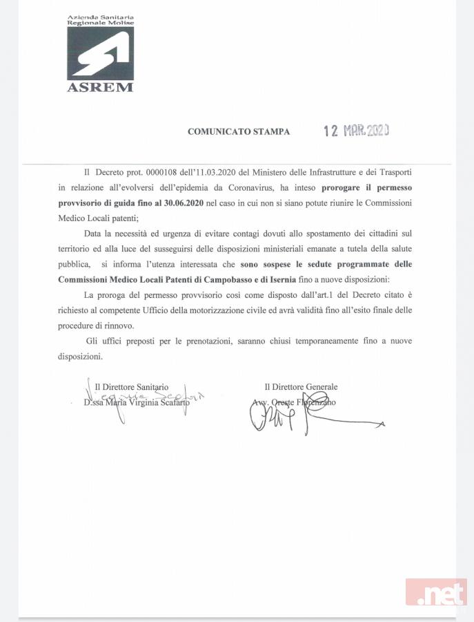 Sono sospese le sedute programmate dalle commissioni medico locali Patenti di Campobasso e Isernia.