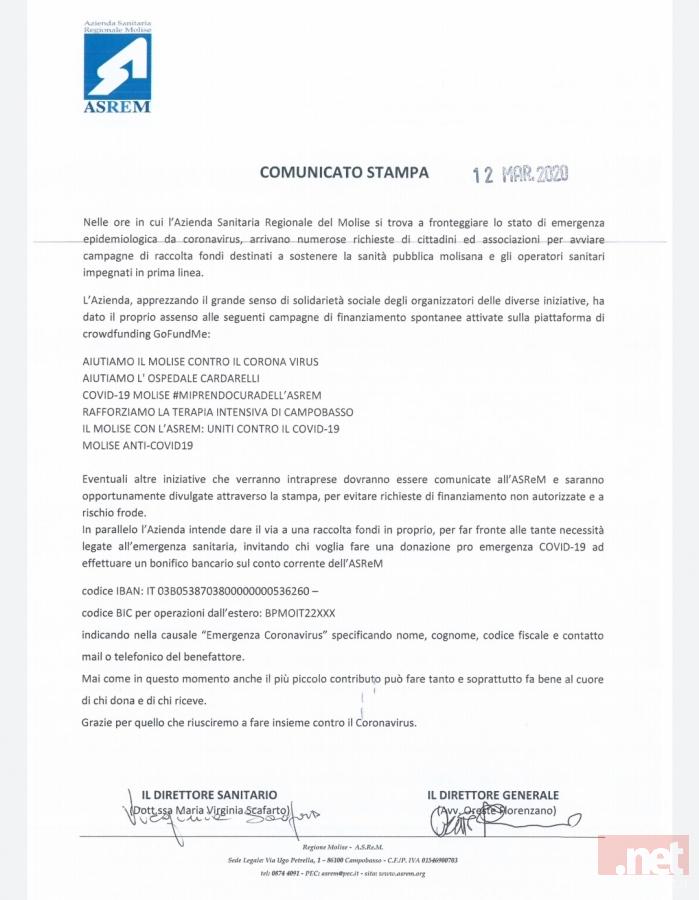 L' Asrem ha messo a disposizione un Iban e una causale per chiunque volesse donare qualcosa per combattere l' emergenza. Nell'allegato il codice e la Bic causale.