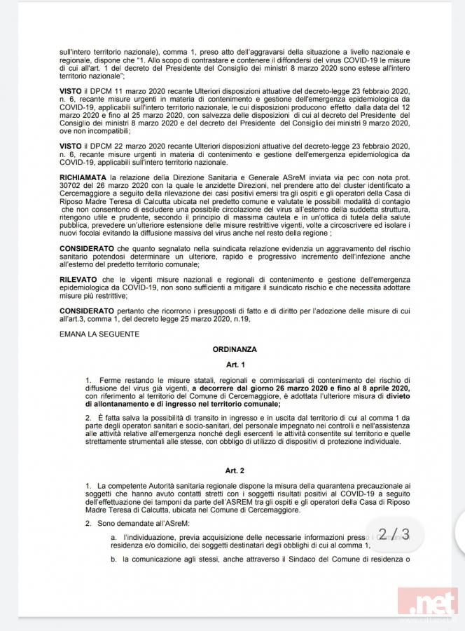 La notizia è stata diffusa insieme all' ordinanza della Regione Molise dopo le 23 di ieri. Nella tarda serata di ieri è anche deceduta la paziente 1 di quel focolaio: si tratta di una 94enne. Ma ecco cosa dice l' ordinanza