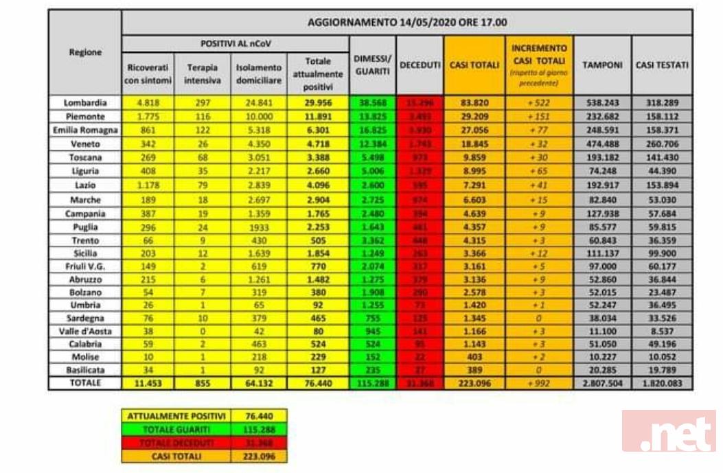 #Totale casi: 223.096 (+992, +0,4%)