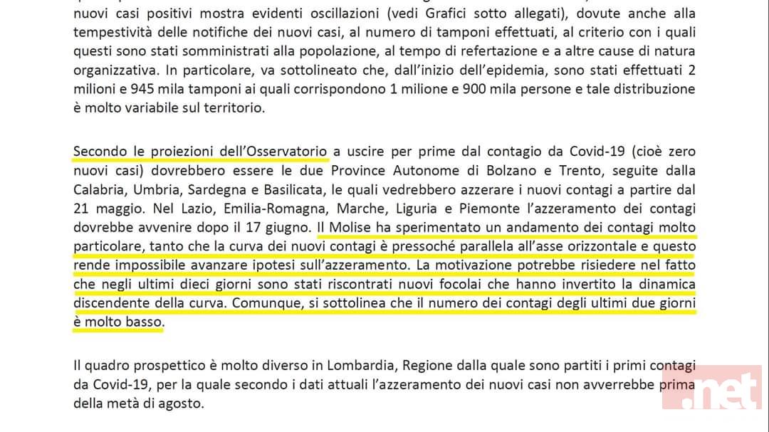 dovrebbe avvenire dopo il 17 giugno. Il Molise ha sperimentato un andamento dei contagi molto