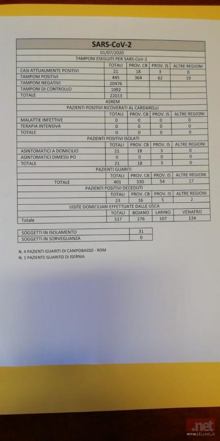 I casi attuali scendono a 21 e sono tutti isolati a domicilio. Il Cardarelli infatti risulta vuoto. Il totale dei pazienti guariti sale a 401, mentre sono 23 i deceduti. Le persone in quarantena sono 31.